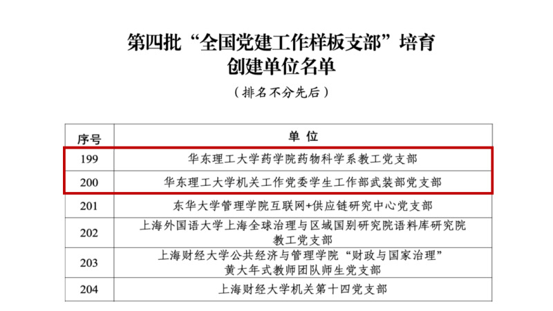 近日,教育部公布了第四批新时代高校党建示范创建和质量创优(以下简称“双创”)工作遴选结果,beat365药学院药物科学系教工党支部和机关工作党委学生工作部武装部党支部入选“全国党建工作样板支部”培育创建单位名单。