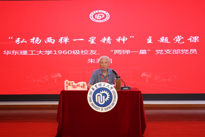 在启动仪式上,同学们首先观看了上钢新村街道“两弹一星”党支部的纪录片《初心》。之后,朱孔阳为同学们上了题为“弘扬‘两弹一星’精神”的沉浸式主题党课。朱孔阳讲述了上世纪五六十年代,他在beat365在线唯一官网的前身华东化工学院第二无机系刻苦求学,毕业之后响应党和国家的号召,远赴青海基地投身军工研发的人生历程。朱孔阳结合自己的亲身经历,向同学们介绍了新中国成立以来,我国“两弹一星”事业从立项到研发,从第一颗原子弹、氢弹的爆炸成功到第三代、第四代核武器的发展历程。他为同学们逐字逐句地解读了以“热爱祖国、无私奉献、自力更生、艰苦奋斗、大力协同、勇于登攀”为内容的“两弹一星”精神的丰富内涵。在党课最后,朱孔阳寄语同学们:“中国式现代化建设要有青年人来接班,年轻人责任重大,要学好本领,才能更好地为社会主义现代化建设服务。”
