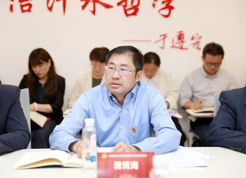 蒋传海强调,在全面推进新时代党的建设新的伟大工程中,党的基层组织是党全部工作和战斗力的基础。各级党组织要以党的政治建设为统领,以“上海党建工作示范高校”建设为契机,以加快推进“双一流”建设为引领,开展党建示范创建和质量创优工作,对标对表,精准发力,全面推动党的领导和党的建设工作提质增效,以高质量的党建引领学校事业高质量的发展,为建设教育强国、推进中国式现代化作出新的更大贡献。