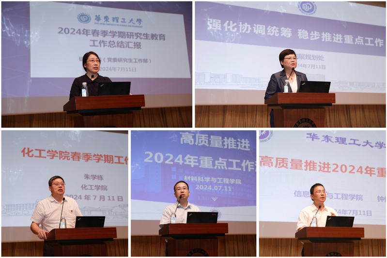 会上,聚焦“高质量推进2024年重点工作”主题,研究生院院长杜文莉、发展规划处处长赵玲、化工学院党委书记朱学栋、材料科学与工程学院院长杜建忠、信息科学与工程学院院长钟伟民先后汇报了本单位有关重点工作的推进情况、经验举措、存在困难以及下一步工作计划。