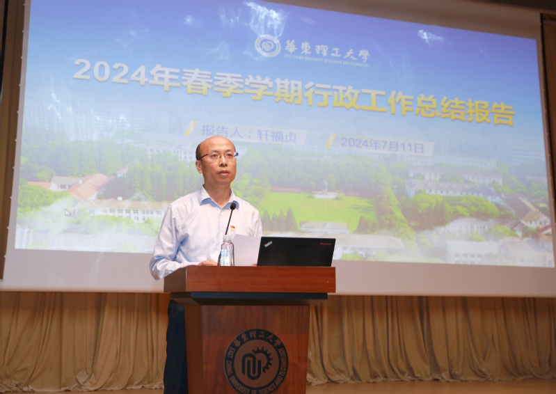 轩福贞作春季学期行政工作总结。他从“着力造就拔尖创新人才,人才自主培养质量持续提高”“着力加强学科内涵建设,‘双一流’建设加快推进”“着力打造高素质师资队伍,人事制度改革持续深化”“着力提升重大任务承载能力,科技创新水平持续增强”“着力深化国际合作层次,对外合作交流务实开展”“着力改善条件保障水平,内部治理效能持续强化”等六个方面,全面总结了学校行政重点工作取得的阶段性进展。