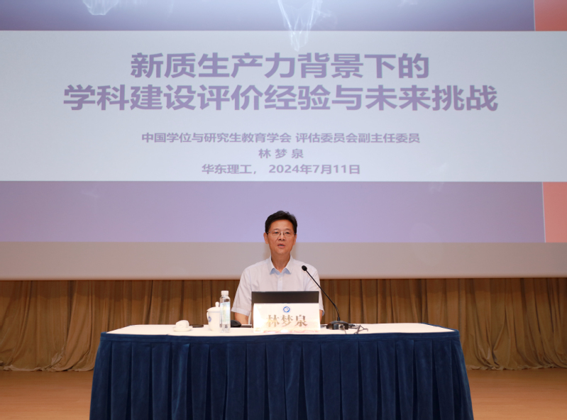 在校党委理论学习中心组(扩大)专题学习中,教育部学位中心原副主任林梦泉研究员应邀作“新质生产力背景下的学科建设评价经验与未来挑战”辅导报告,对新质生产力与教育评价、学科评价实践与创新、商业排行榜风险与理性认知、研究生教育评价研究热点等进行了深刻分析,并着重介绍了学科评估的指标体系及其创新点。