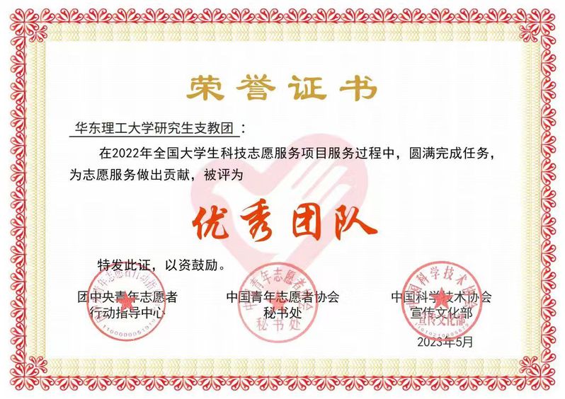 此次获评的乡村振兴育人典型项目,源于学校指导研究生支教团在寻甸县的帮扶实际。自2016年起,学校每年派遣7名研究生支教团志愿者前往寻甸,承担仁德一小、仁德四小等学校教育教学工作,在搭建青少年“科普平台”和乡村振兴“育人平台”的精准帮扶过程中,为服务寻甸教育、经济、文化、公益等事业作出了积极贡献,取得良好效果,实现当地学生与研支团成员“双成才”目标,深化“双平台促双成才”帮扶体系。相关工作先后荣获“全国大学生科技志愿服务示范团队”、上海市“青年五四奖章”集体等荣誉,开展的科普志愿工作入选《中国科技志愿服务典型案例选编》。