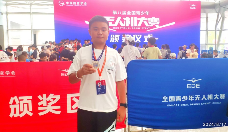 图片说明:寻甸学生马臣淏荣获全国青少年无人机大赛二等奖