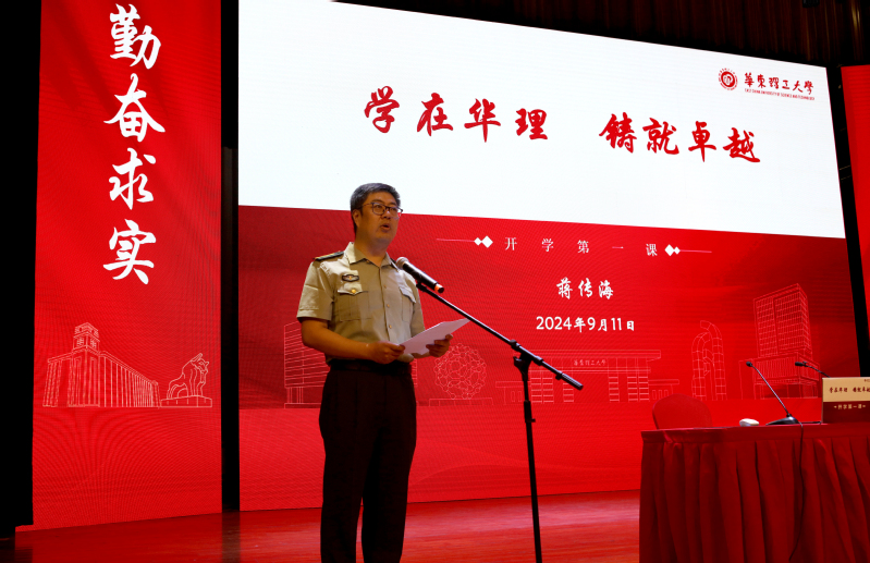 为深入学习贯彻全国教育大会精神,落实立德树人根本任务,引导新生“扣好人生第一粒扣子”,9月11日下午,校党委书记蒋传海在奉贤校区以“学在beat365 铸就卓越”为主题,为全体2024级本科新生讲授“开学第一课”。校党委副书记宋来,校党委副书记、纪委书记龚跃,武警上海总队机动第一支队三大队教导员、军训团参谋长尹欣欣中校参加活动。开学第一课由校党委副书记沈海涛主持。