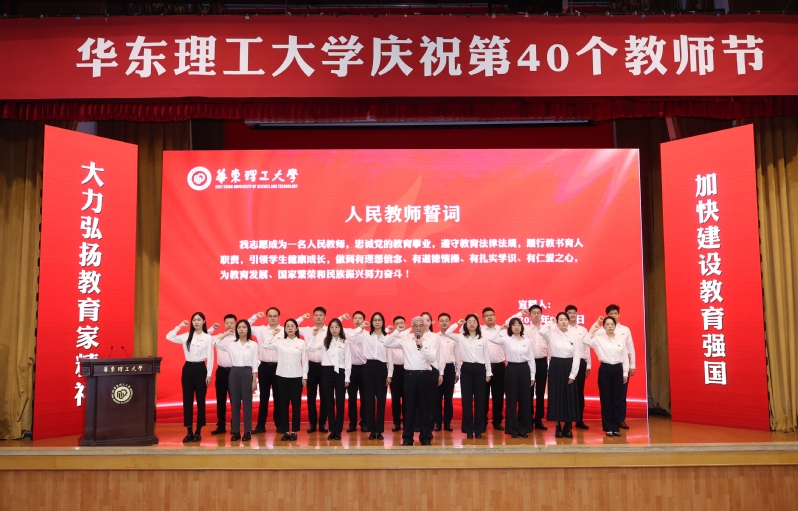 2024年教师节是我国第40个教师节。9月10日上午,学校隆重举行主题为“大力弘扬教育家精神,加快建设教育强国”教师节庆祝大会,深入学习贯彻党的二十届三中全会精神和全国教育大会精神,表彰2023-2024学年在教学、科研、管理等各项工作中取得优异成绩的教师集体和个人。校党委书记蒋传海,校长轩福贞,党委副书记宋来、沈海涛,党委副书记、纪委书记龚跃,副校长李涛、王慧锋、朱为宏、阎海峰、李春忠、赵黎明等出席会议。中国工程院院士袁渭康、涂善东、汪华林受邀出席大会。大会主会场设在徐汇校区逸夫楼报告厅,奉贤校区和各二级单位的23个分会场进行了同步直播。