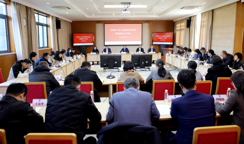 学校第十二次党代会召开在即,11月27日上午,学校党委在和平楼第二会议室召开二级党组织书记会议暨党群部门工作会议,进一步统一思想、凝聚共识,高质量推进党代会筹备工作落地落实。校党委书记蒋传海主持会议并讲话,校党委副书记宋来、沈海涛,校党委副书记、纪委书记龚跃,校党委常委、组织部部长夏江雯以及各二级党组织书记、党群部门负责同志参加会议。