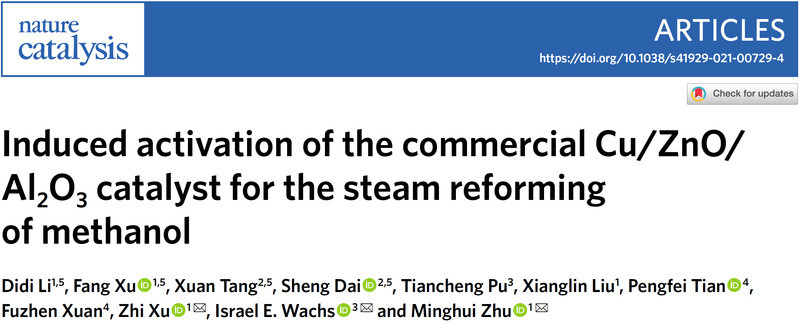 Recently, the international authoritative academic journal Nature Catalysis published online the latest research article in the field of hydrogen production by steam reforming of methanol under the title of “Induced activation of commercial Cu/ZnO/Al2O3 catalyst for steam reforming of methanol”.