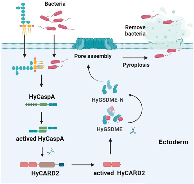 Recently, the research group of Professor Liu Qin from the School of Bioengineering and the State Key Laboratory of Bioreactor Engineering of our university has made important progress in the evolutionary origin of cell scorch. It is the first time to analyze the ancestral cell scorch signaling pathway in the animal kingdom in model animal Hydra and reveal its conservative anti-infection function. The related research article was published online in Science Progress with the title of “Caspase-mediated LPS Sensing and Pyroposis Signaling in Hydra”.