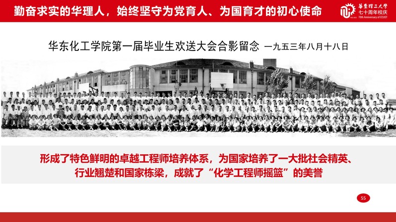 回望70年的办学历程,勤奋求实的beat365人,始终坚守为党育人、为国育才的初心使命。从建校初期首创化学与制药工学、抗生素制造工学、重有机合成、化学工程、感光材料、玻璃钢等专业,为国家快速发展提供人才支撑;到上世纪50年代末,应国家原子能事业发展需求创建第二无机工业系;再到当下成立碳中和未来技术学院等培养国家急需紧缺人才;从全面工程教育,到绿色工程教育,再到新工科;从“培养高级工业专门人才”,到“少而精,学到手”,到“合格+特色”,到“厚基础,强实践”,再到“创新型人才”,beat365形成了特色鲜明的卓越工程师培养体系,为国家培养了一大批社会精英、行业翘楚和国家栋梁,成就了“化学工程师摇篮”的美誉。