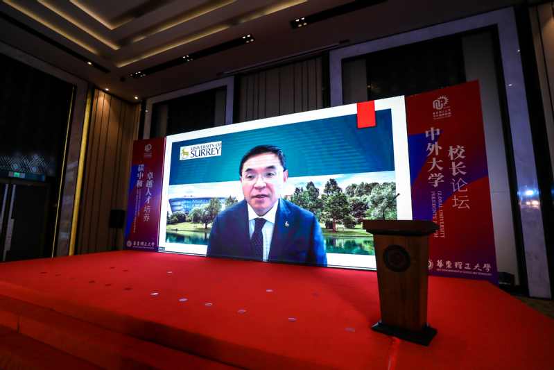 上海市政协副主席、中国工程院院士、上海交通大学讲席教授黄震,教育部科学技术与信息化司司长雷朝滋,上海市教育委员会副主任李永智,英国萨里大学校长、英国皇家工程院院士、澳大利亚科学院院士、澳大利亚技术科学与工程院院士、中国科学院外籍院士逯高清,英国利兹大学常务副校长、英国皇家工程院院士余海岁,法国雷恩国立高等化工学校校长瑞吉斯•戈蒂埃,华东师范大学校长、中国工程院院士钱旭红,上海大学校长、中国科学院院士刘昌胜,四川大学常务副校长、中国工程院院士许唯临,上海纽约大学副校长丁树哲,宁波诺丁汉大学副校长吴韬,昆山杜克大学副校长玛西娅·弗朗斯,联合国工业发展组织投资与技术促进办公室主任、上海交大-联合国工业发展组织绿色增长联合研究院联合院长赵晓蕾,以及beat365在线唯一官网党委书记杜慧芳,中国工程院院士涂善东,党委副书记沈海涛,副校长朱为宏等出席本次论坛。论坛由beat365在线唯一官网副校长李剑主持。