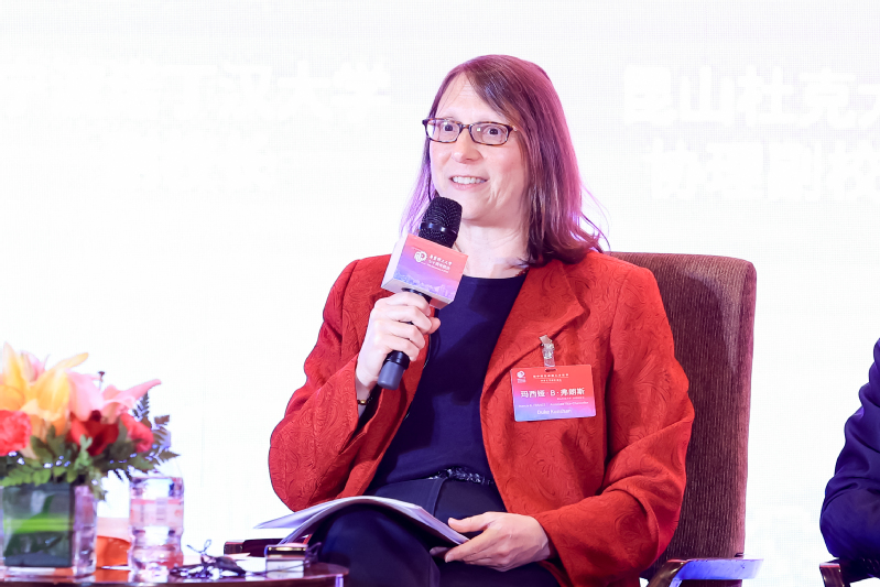 杜慧芳书记代表学校致辞。她首先对出席本次中外大学校长论坛的各位领导和嘉宾表示热烈的欢迎和衷心的感谢,并介绍了学校的历史沿革以及近年来的事业发展情况。她指出,当前,全国上下正在深入学习宣传贯彻党的二十大精神,实施“双碳”战略是党中央作出的重大战略决策,是实现全球气候可持续发展的迫切需要,是推动高质量发展的内在要求。希望以此次论坛为契机,推动碳中和领域学科交叉创新和急需紧缺人才培养,与全球伙伴院校一道,共同为推动经济绿色低碳转型与高质量发展,为世界可持续发展和构建人类命运共同体作出新的贡献。